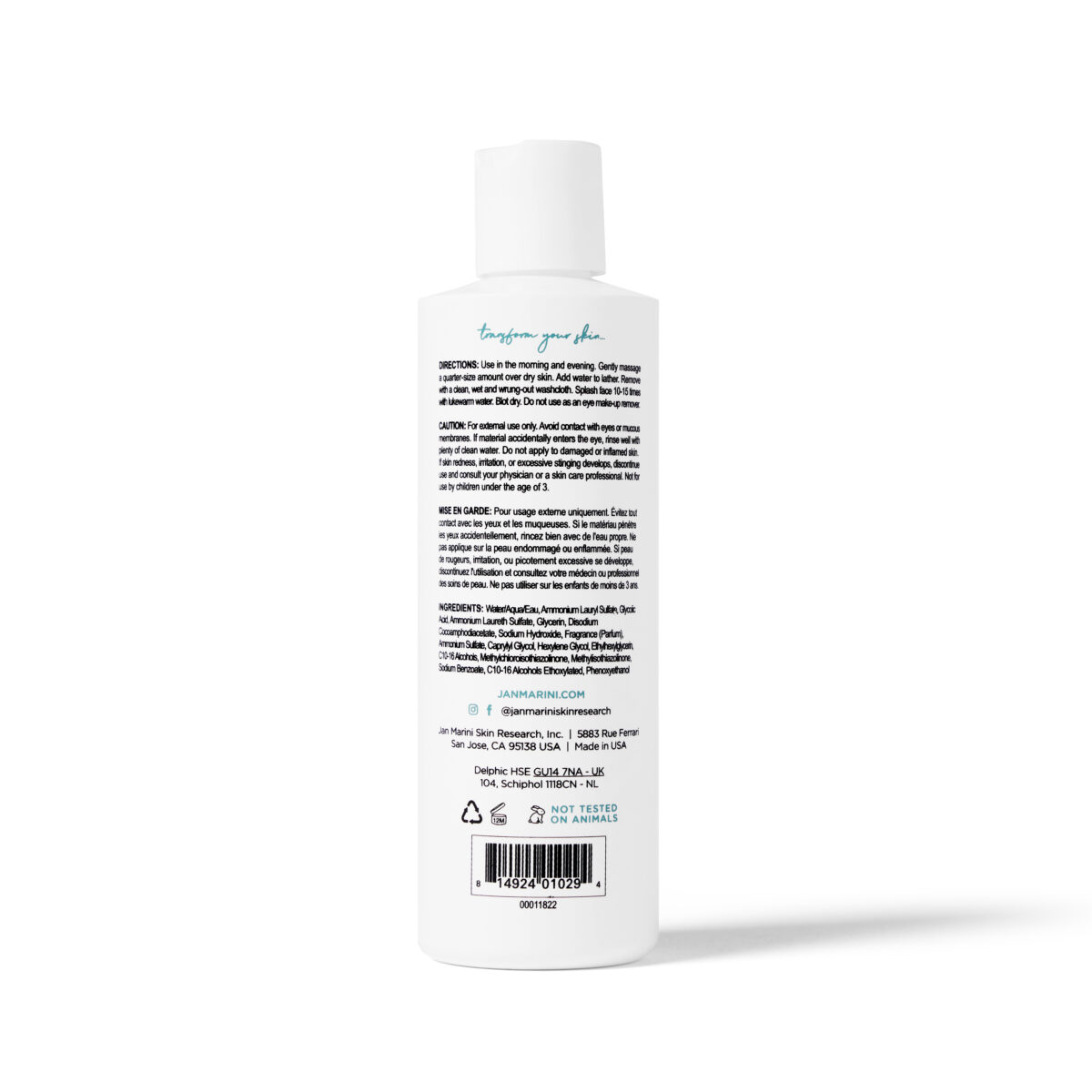 Water/Aqua/Eau, Ammonium Lauryl Sulfate, Glycolic Acid, Ammonium Laureth Sulfate, Glycerin, Disodium Cocoamphodiacetate, Sodium Hydroxide, Fragrance (Parfum), Ammonium Sulfate, Caprylyl Glycol, Citral, Citronellol, Linalool, Limonene, Hexylene Glycol, Ethylhexylglycerin, C10-16 Alcohols, Methylchloroisothiazolinone, Methylisothiazolinone, Sodium Benzoate, C10-16 Alcohols, Ethoxylated, Phenoxyethanol
