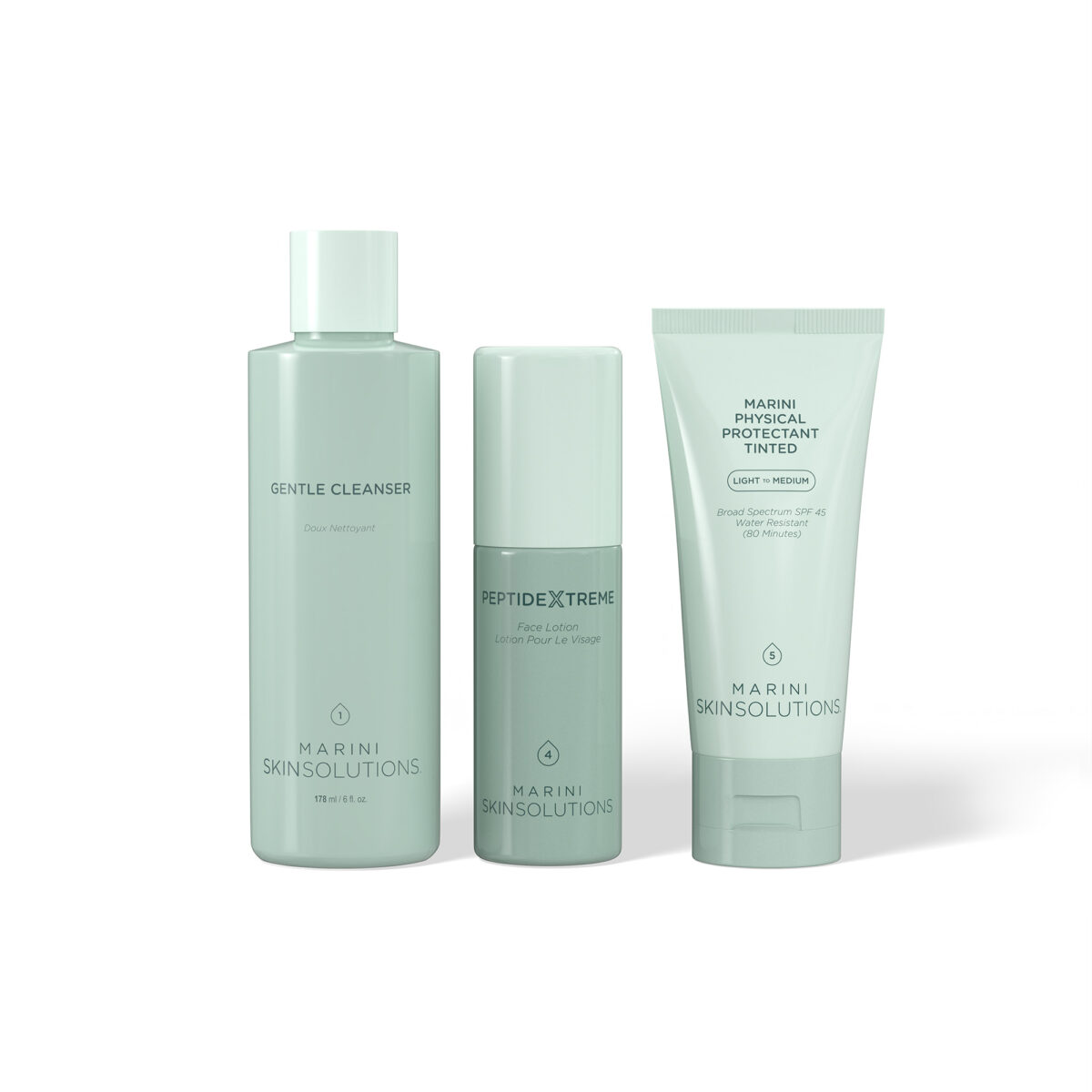 PROTECT: Marini Physical Protectant Tinted SPF 45: A purely physical, broad-spectrum protectant, with zinc oxide, titanium dioxide, green tea, and CoEnzyme Q10, plus a universal tint, reduces redness and shields against sun damage and photo-aging.